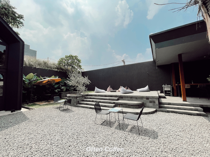 - Keunikan: Memadukan coffee shop dengan lanskap hijau yang ekstensif, menciptakan suasana outdoor yang teduh. Desainnya didominasi material alami dan pencahayaan yang lembut.